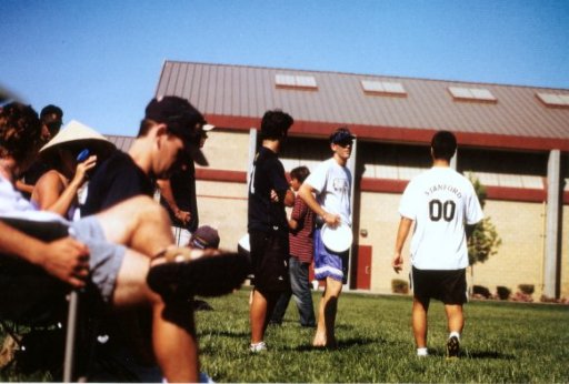 (*) Je ne vois pas pourquoi les monkeys atterriraient sur cette page, mais c’est un de leurs disques qu’il a entre les mains, et qu’il va embarquer (en échange d’un disque de JAM). Bon d’accord, la photo ne montre pas grand chose, mais vous pouvez me croire !Là je crois que c’est UC Santa Cruz qui vient de battre Berkeley A. On ira quand même aux Regionals qui ont lieu deux semaines après. Mais l’aventure s’arrêtera là.Voilà, c’est comme ça qu’on utilise son pied pivot. Oups je ne sais plus de quelle équipe il s’agit. M’enfin le numéro 5 de Ugmo est Chris.