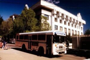 Le bâtiment qui abrite mon labo. Au coin de Le Roy et Hearst. Avec un bus, qui fait le tour du camps (car on perd au moins une heure à pieds)).