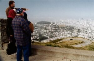 Des touristes en haut de Twin Peaks. J’ai attendu pas mal de temps pour qu’il y en ait un qui se décide à pointer du doigt, ou à faire quelquechose de photogénique.