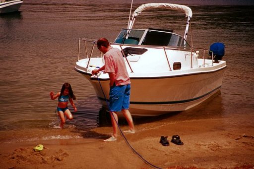 Ambiance Robinson Crusoé pour cette petite fille qui n’arrivera pas à déplacer cette vieille barque. Eh oui, c’est lourd !