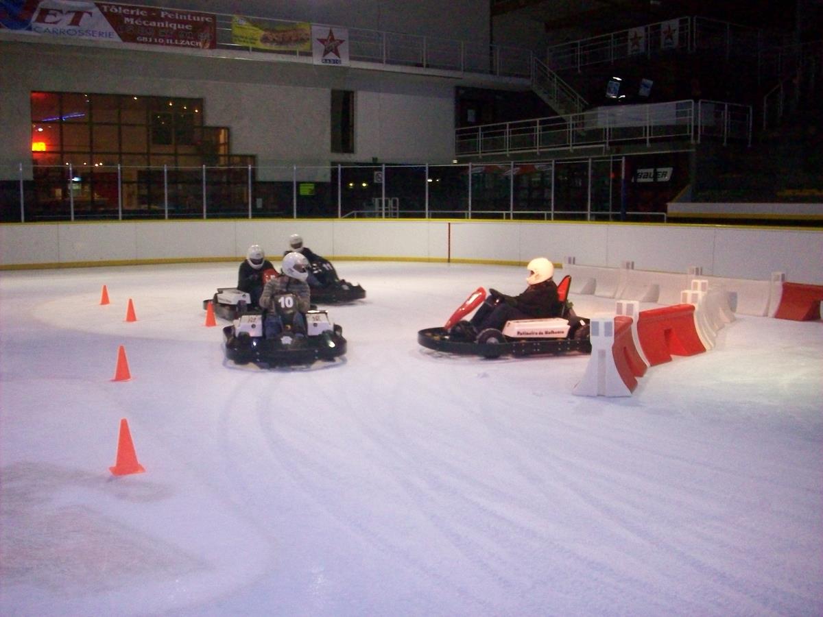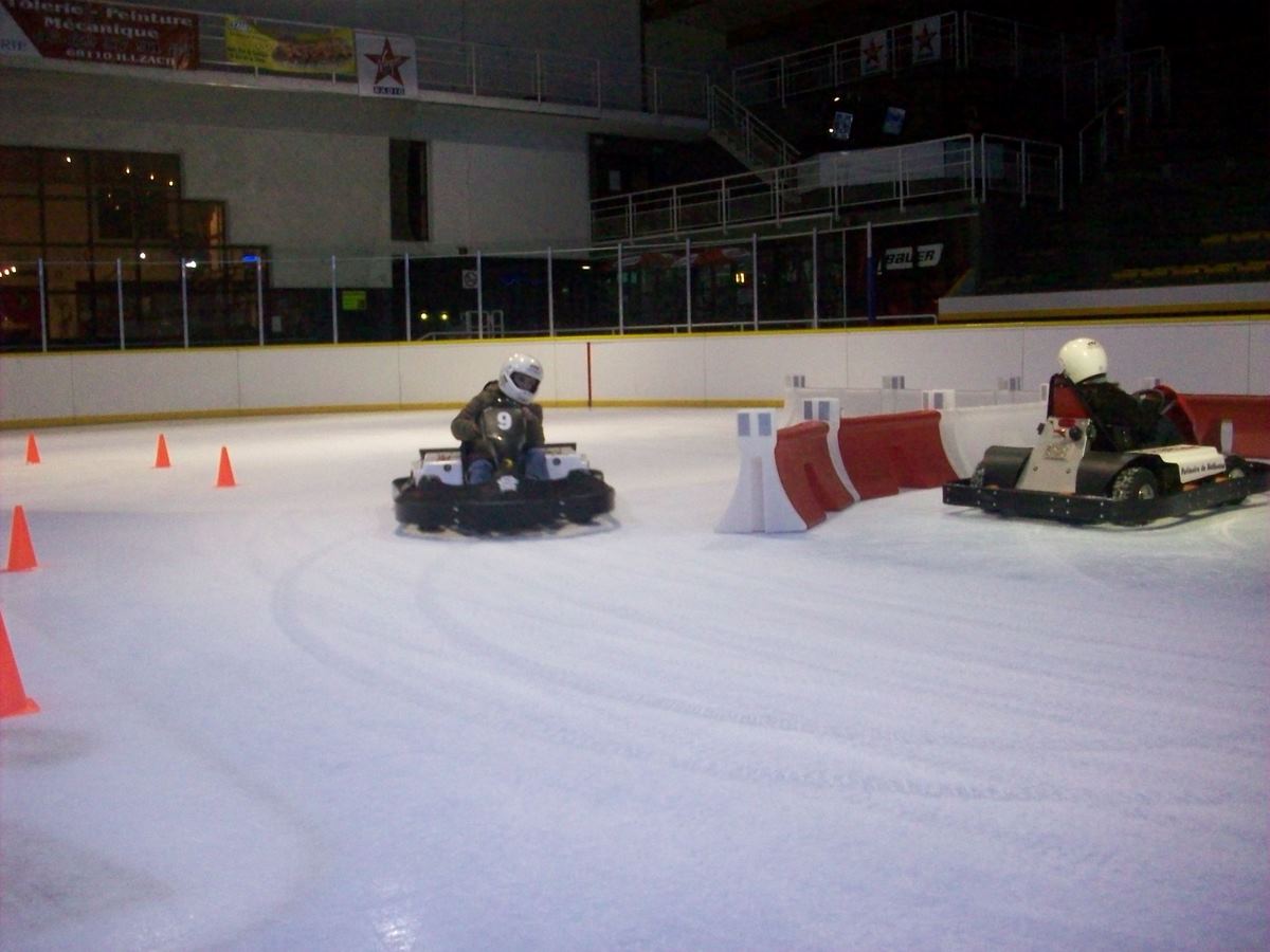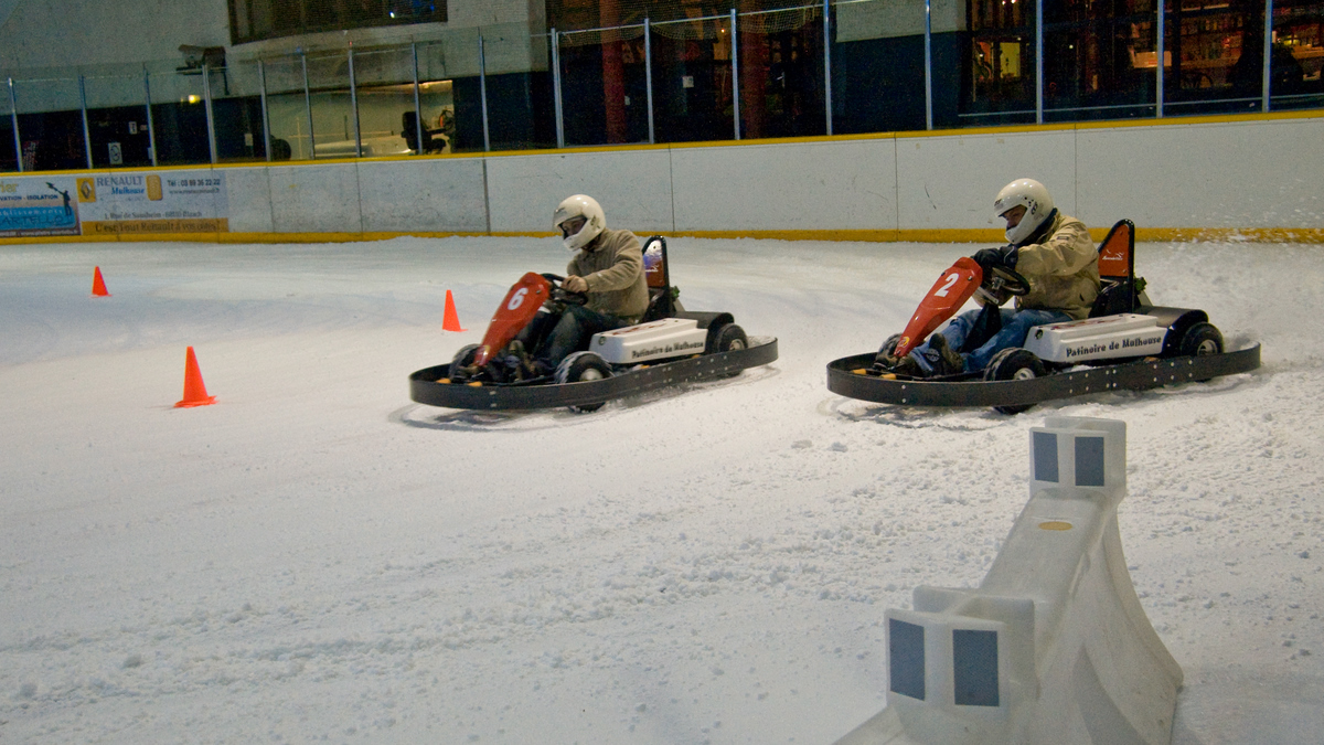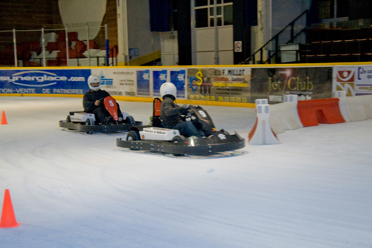 Mardi 25 novembre au soir, l’équipe d’Alten du site Orange lab’s de Belfort est de sortie à la patinoire de Mulhouse pour une activité un peu inhabituelle : le karting sur de la glace. Personnellement je n’ai jamais rien pratiqué qui puisse ressembler de près ou de loin à du pilotage sur glace (pas même de karting sur bitume). Alors bien-sûr, ce sont des kartings électriques et leur vitesse est donc limitée à quelque chose de raisonnable. Les pneus sont cloutés et le casque est fourni. Bref, rien qui ne fasse tant peur que ça et je me lance donc dès le deuxième groupe (on passait par groupes de 4/5) en espérant ne pas me rendre trop ridicule (a priori la chicane risque de se terminer en tête-à-queue).