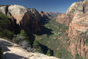 Aujourd’hui nous attend la randonnée la plus difficile et la plus vertigineuse des vacances : Angel’s Landing. Pour cette fois, on décide de se lever encore plus tôt que l’horaire habituel afin de ne pas rencontrer trop de monde et afin surtout de ne pas faire l’ascension sous la chaleur de midi. Le sentier contient en effet deux portions très abruptes, sans compter la portion finale qui est considérée comme de l’escalade, même si l’indice de difficulté est ridiculement bas : la preuve, les autorités du parc ont fait installer ine chaîne afin de faciliter l’ascension.